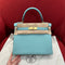 Kelly 28cm, macaron blue, French imported original calfskin, gold buckle, high-end fully handmade exclusive customization‼ ️ Purely hand-made nails, hand-engraved hardware, stainless steel electroplating 18k hardware